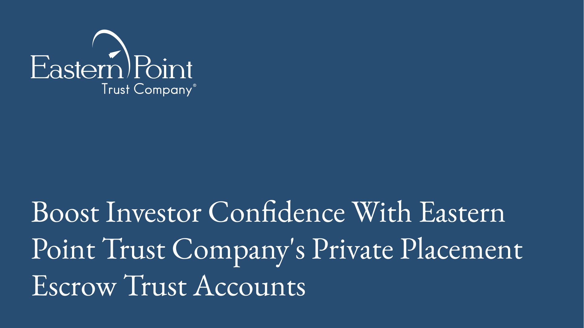 Boost Investor Confidence With Eastern Point Trust Company's Private Placement Escrow Trust Accounts