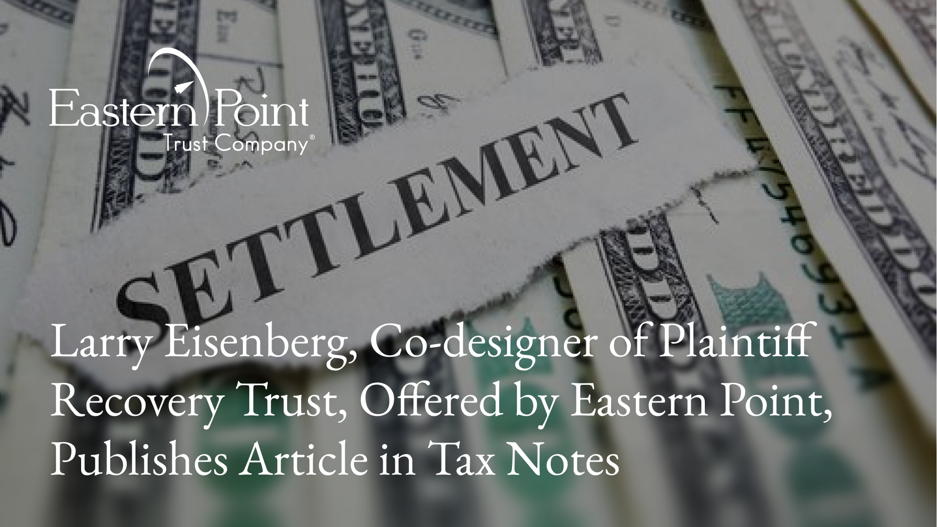 [11/21/2022] — Eastern Point Trust Company (“EPTC”) announced recent successes of the Plaintiff Recovery Trust (“PRT”) solution in solving the Plaintiff Double Tax, which is the unfair result of 2017 legislation that can cut plaintiff recoveries in half.